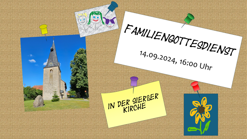 Wir feiern einen Familiengottesdienst in Sierße und laden Sie/Euch herzlich ein, dabei zu sein! Im Rahmen des Gottesdienstes werden wir die langjährige KiGo-Leitung verabschieden und unser neues Kindergottesdienstteam vorstellen.